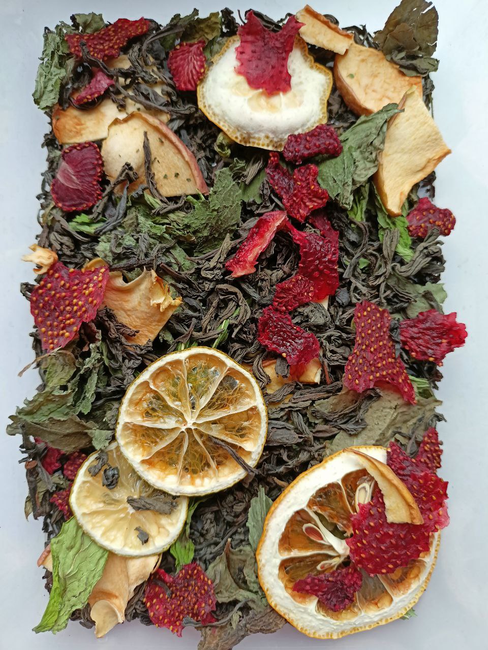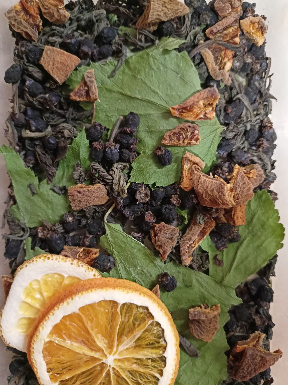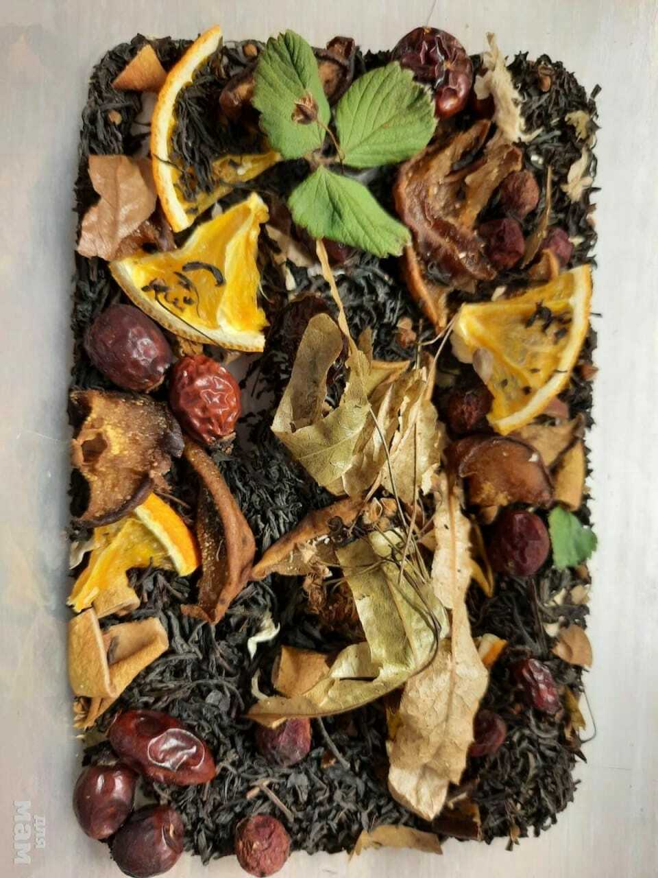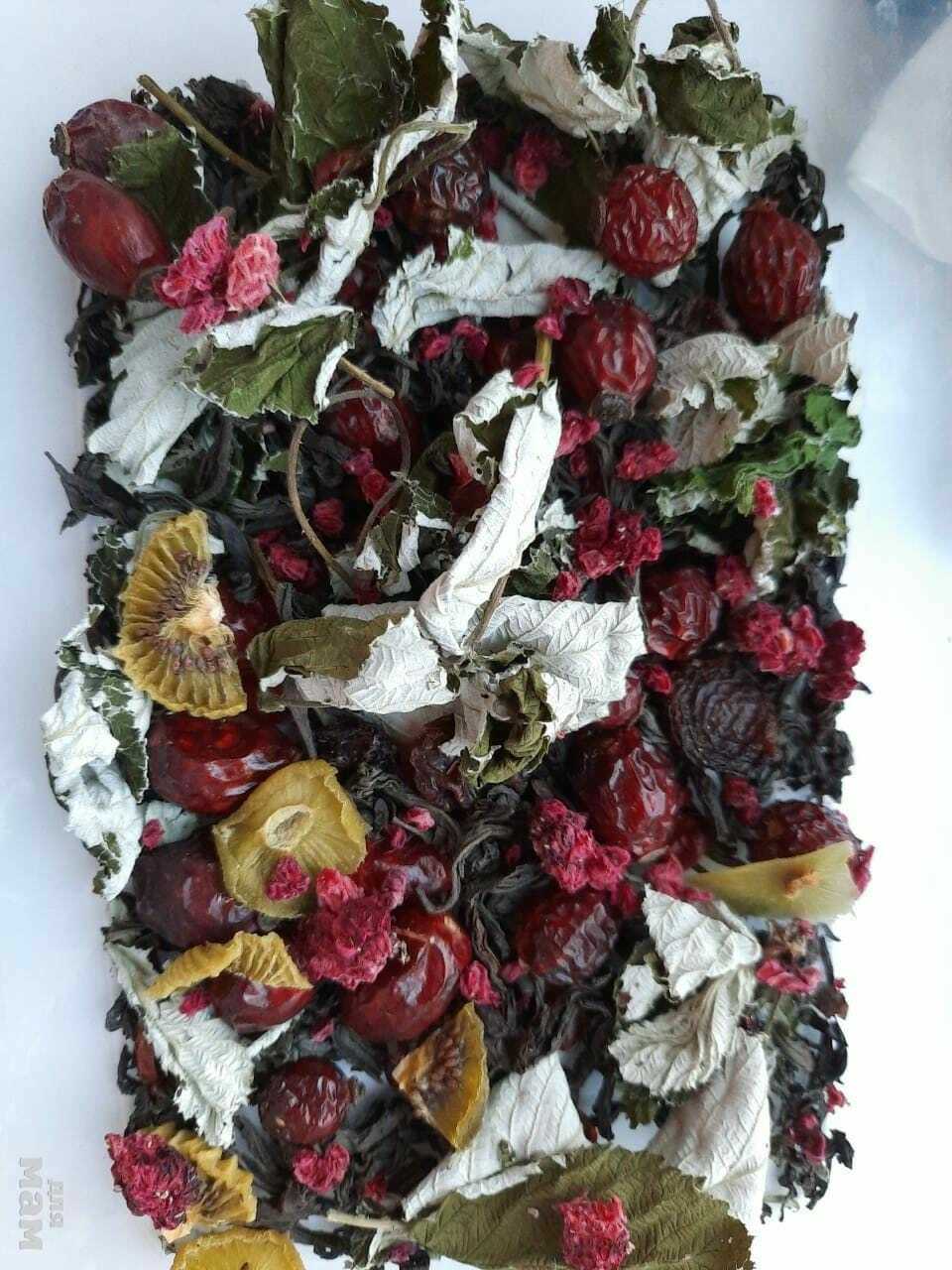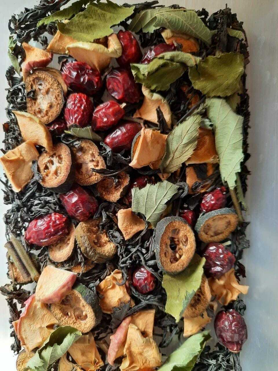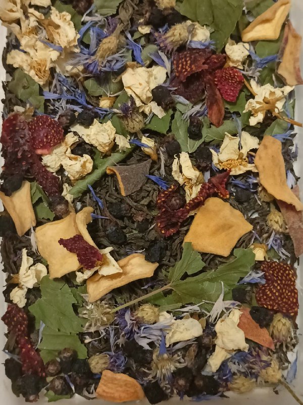 Состав: фейхоа, яблочко, шиповник, лист черной смородины , чай черный/зеленый (на выбор) По умолчанию идет черный Расфасовка 50гр