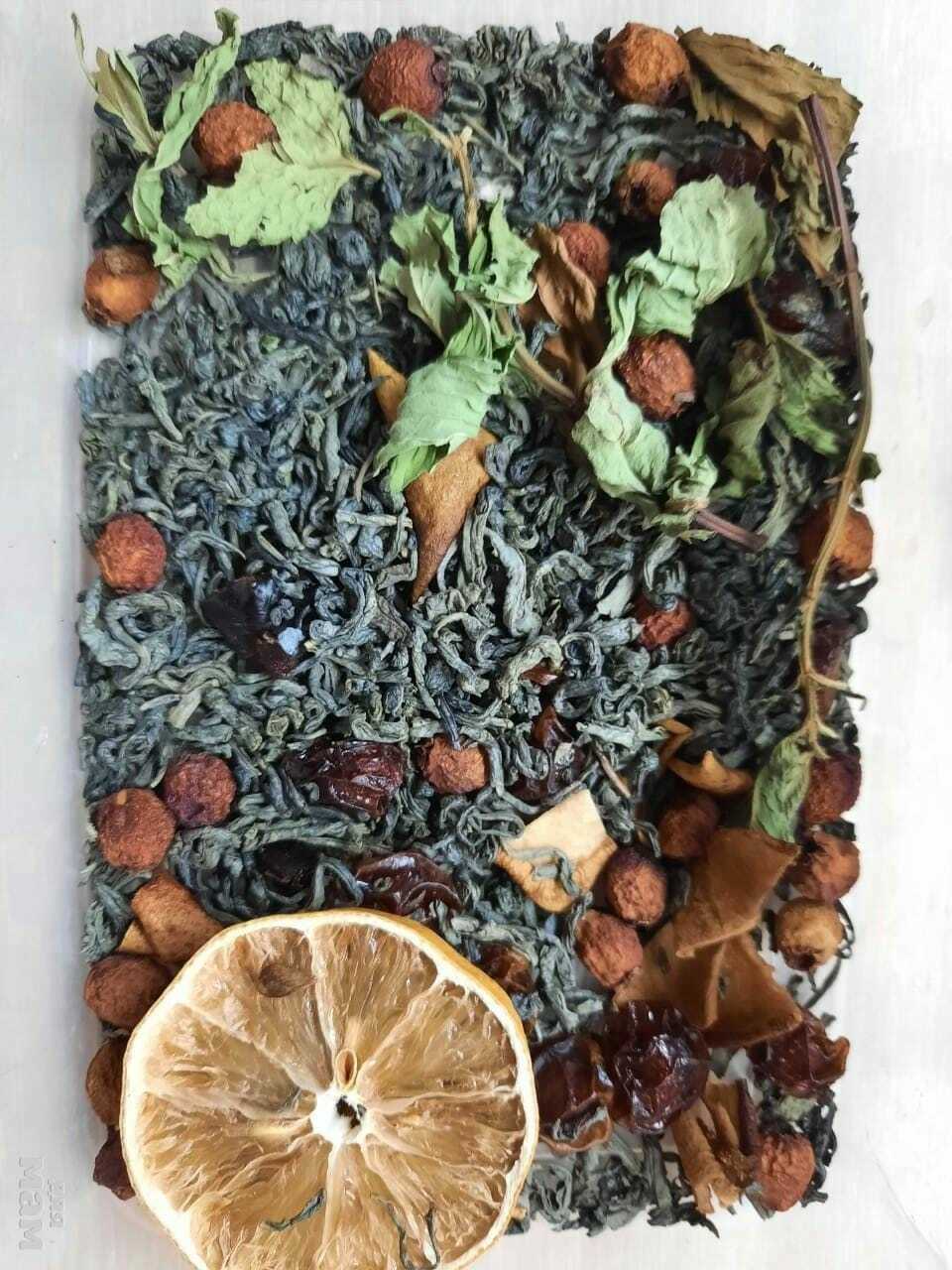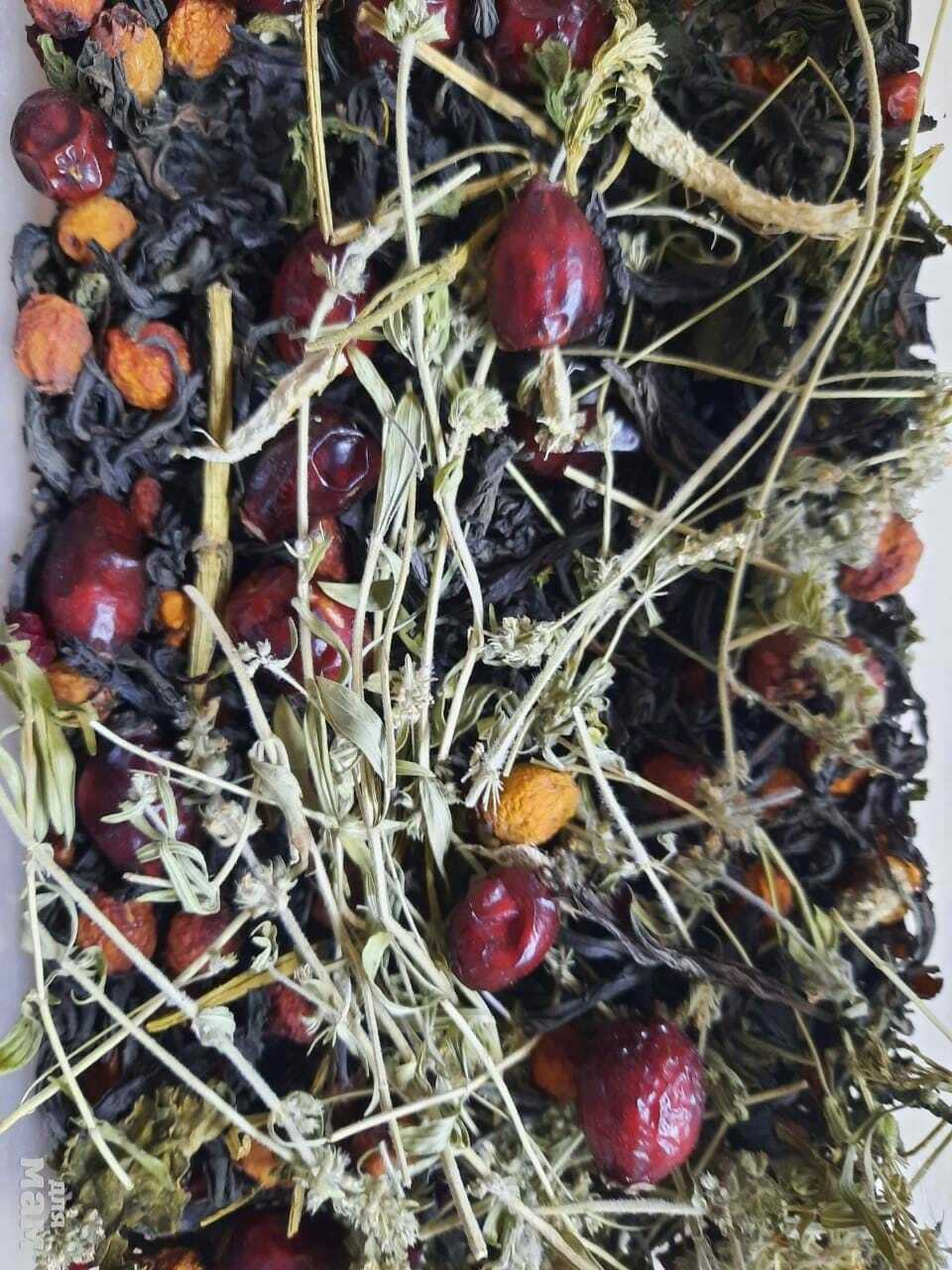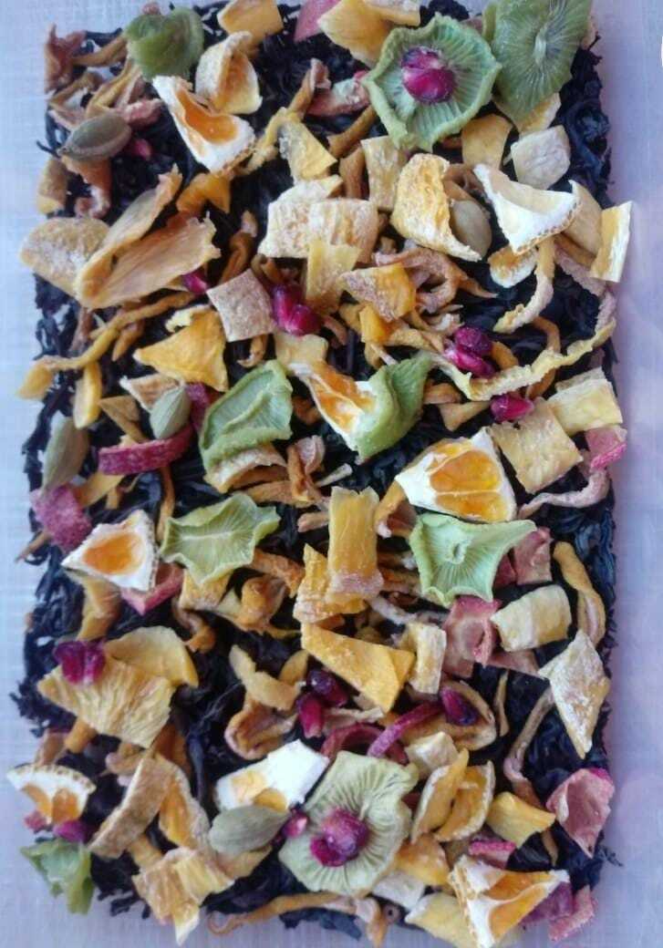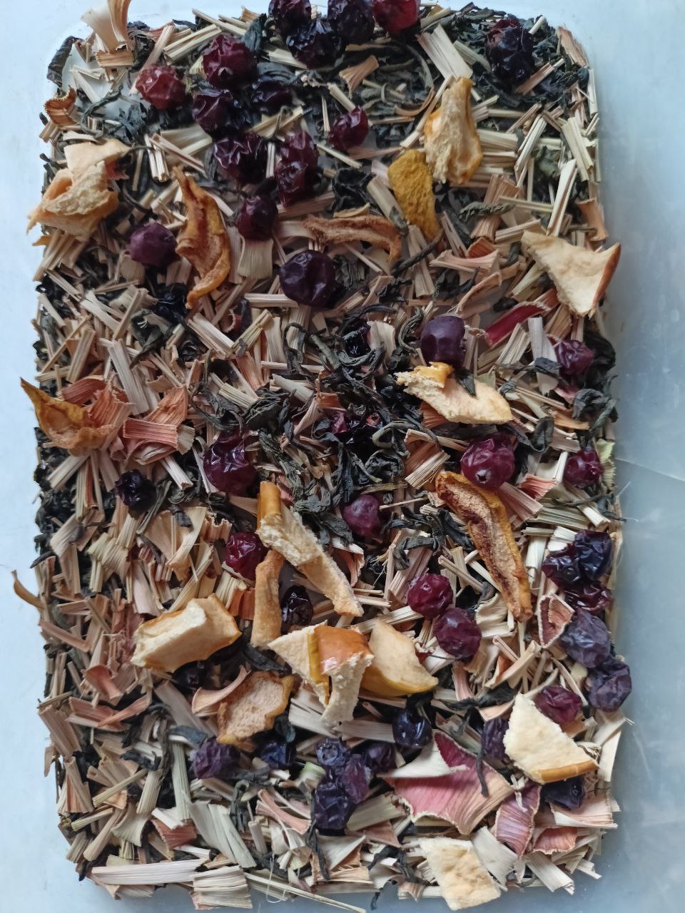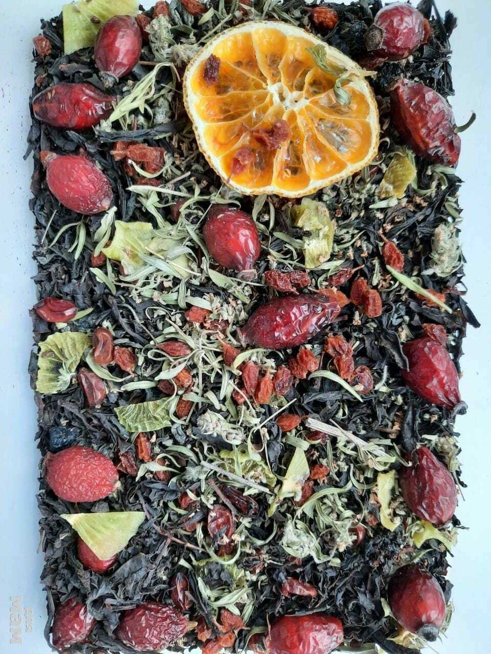 Состав: фейхоа, яблочко, шиповник, лист черной смородины , чай черный/зеленый (на выбор) По умолчанию идет черный Расфасовка 50гр