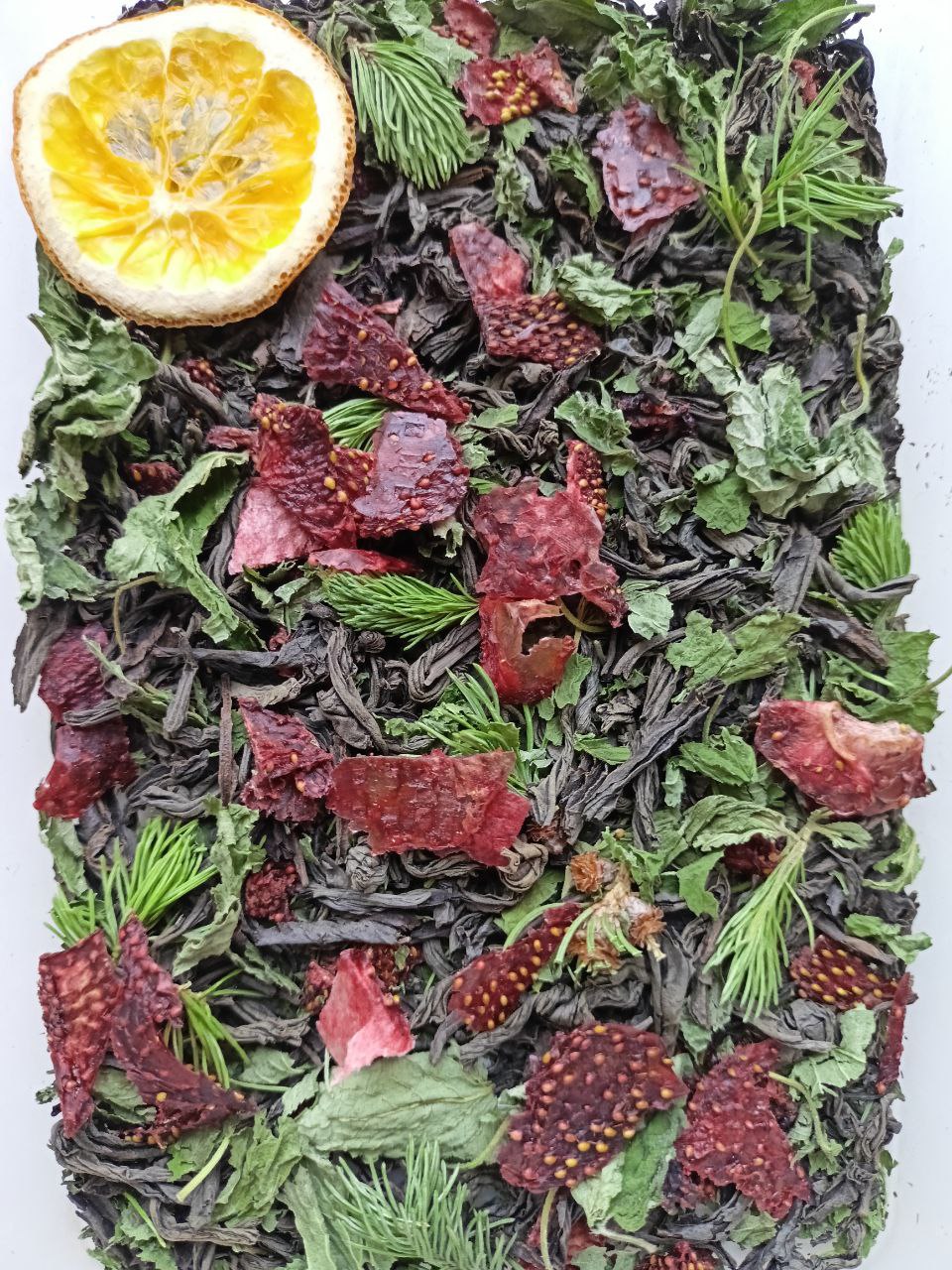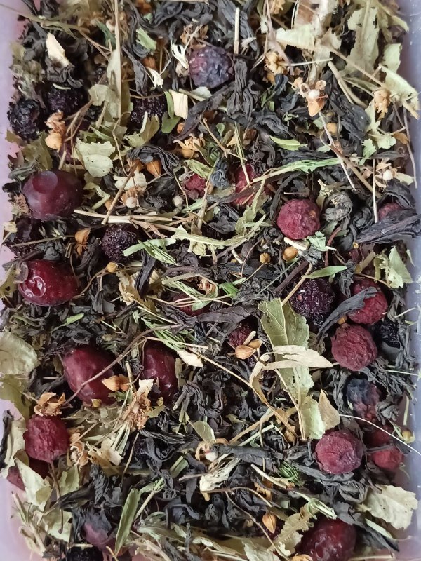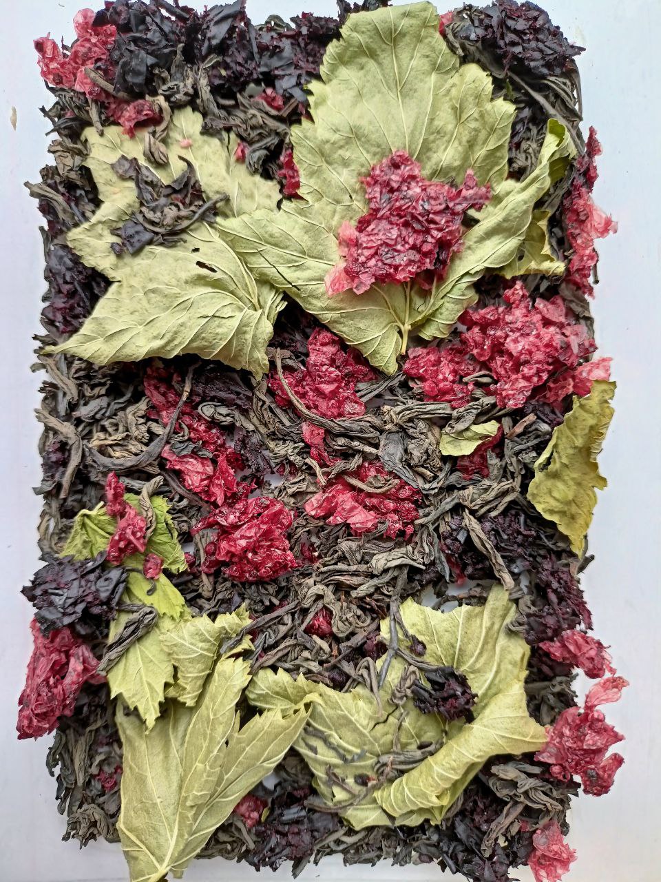 Состав: ферментированные листья малины, ягоды малины на веточке, лепестки розы, яблочко, чай черный/зеленый (на выбор) По умолчанию идет черный Расфасовка 50гр