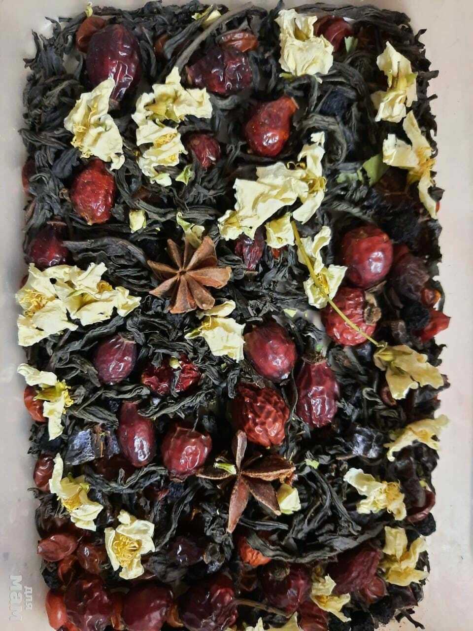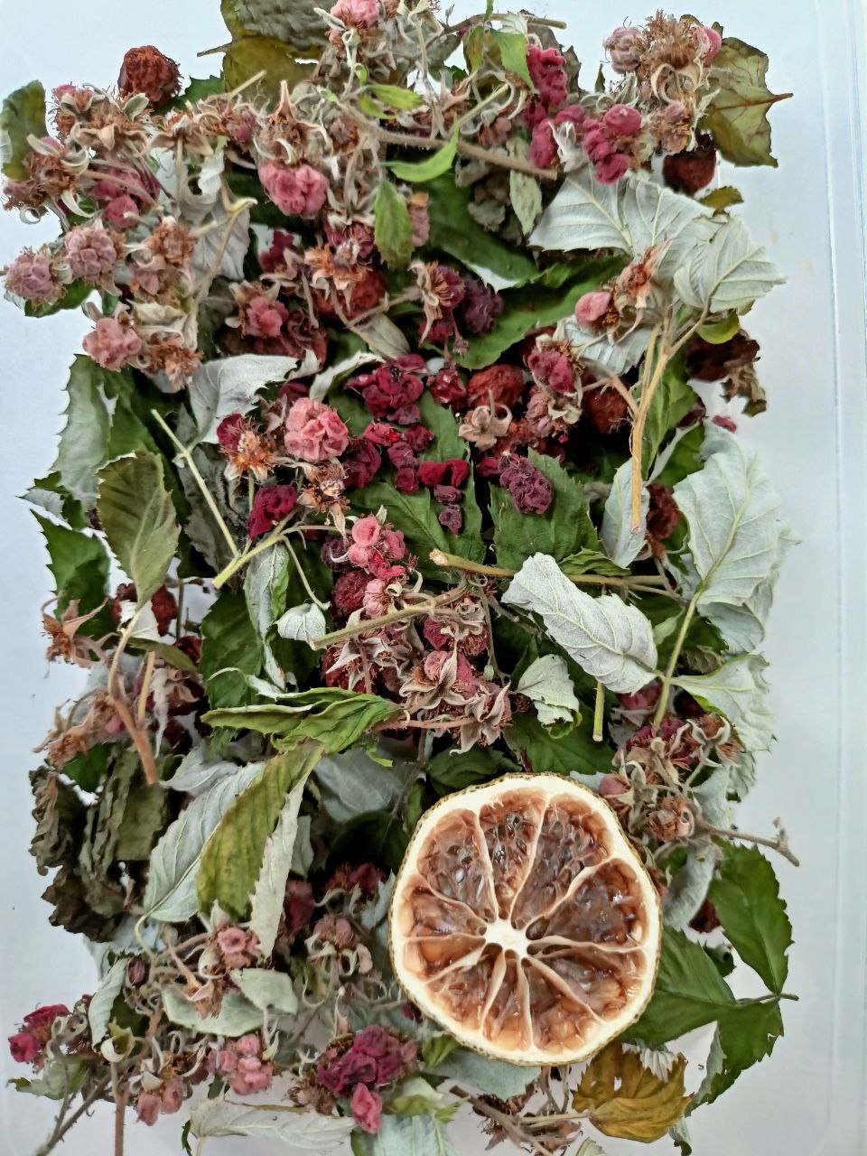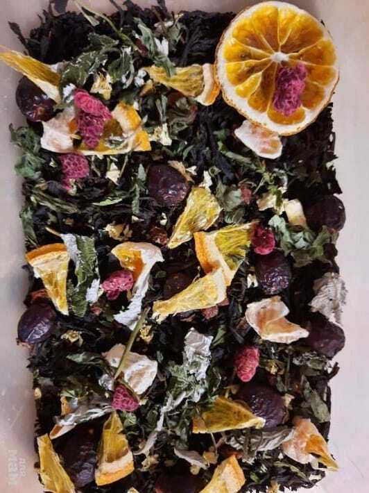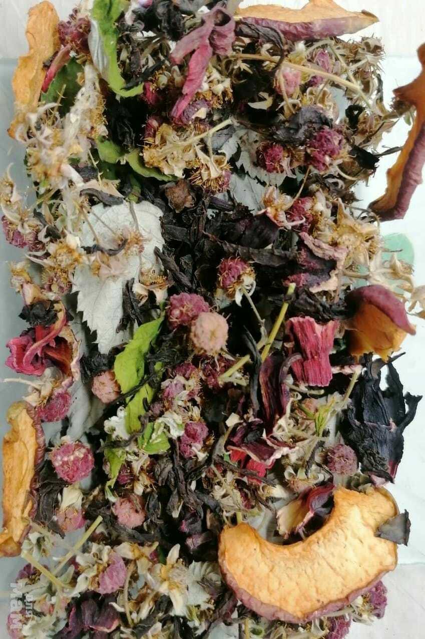 Состав: ферментированные листья малины, ягоды малины на веточке, лепестки розы, яблочко, чай черный/зеленый (на выбор) По умолчанию идет черный Расфасовка 50гр